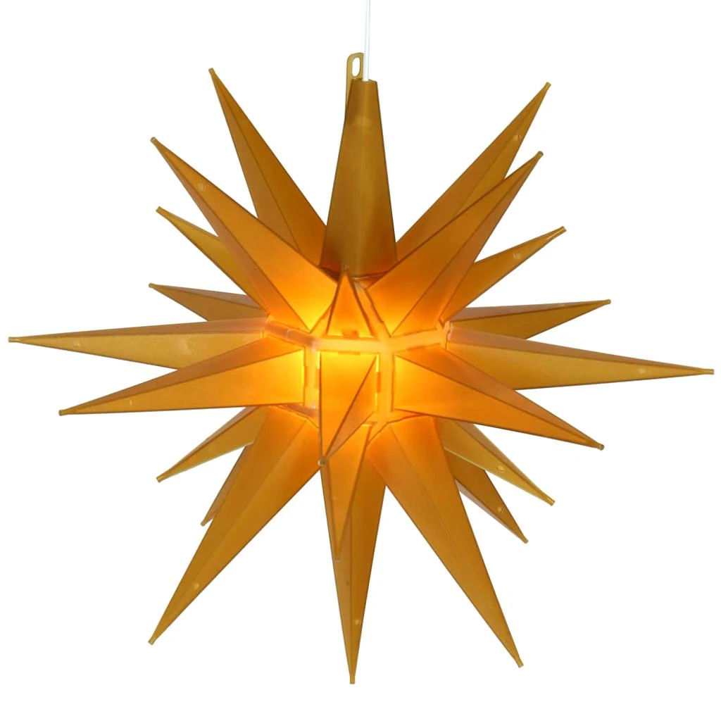 | Manufacturer Description: | 14″ YELLOW MORAVIAN STAR WITH 5′ LEAD CORD (V491407) | ||||||