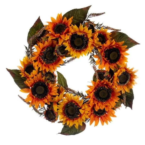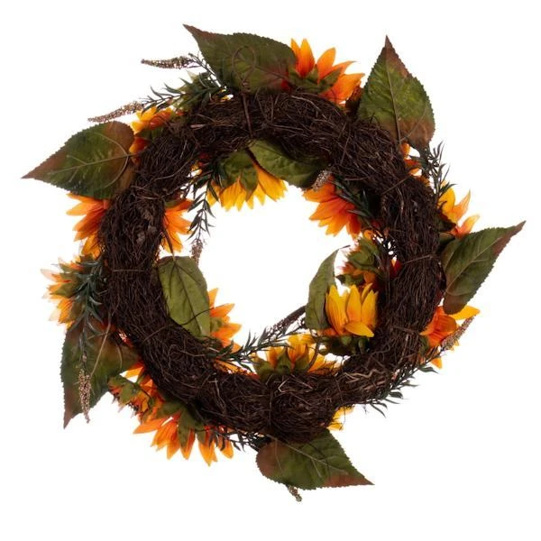 | Manufacturer Description: | 24″ Yellow Sunflower Wreath with Fern (FT210124) |