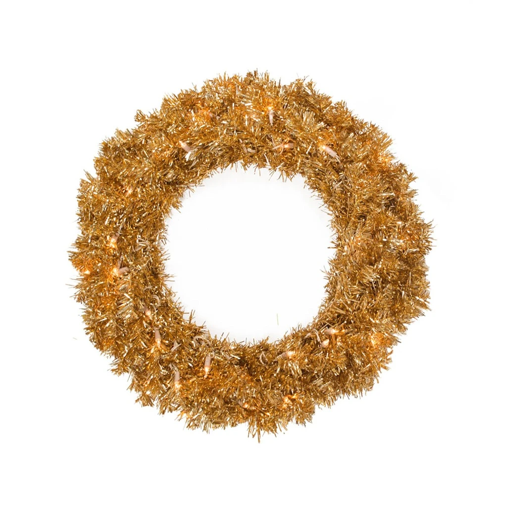 | Manufacturer Description: | 36″ Antique Gold Tinsel Wreath 100 Clear (B104137) | ||||||