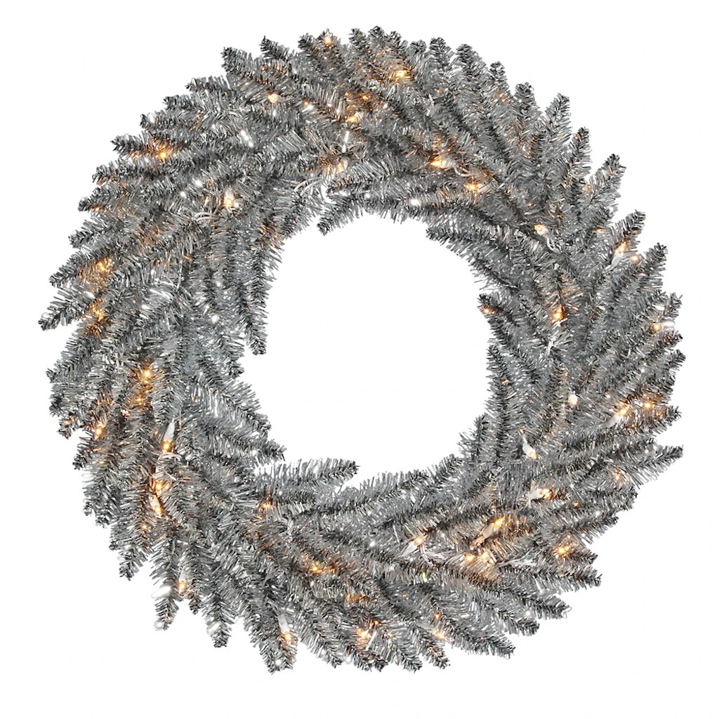 | Manufacturer Description: | 24″ Pewter Tinsel Wreath Dura-Lit 50Cl (G110725) | ||||||