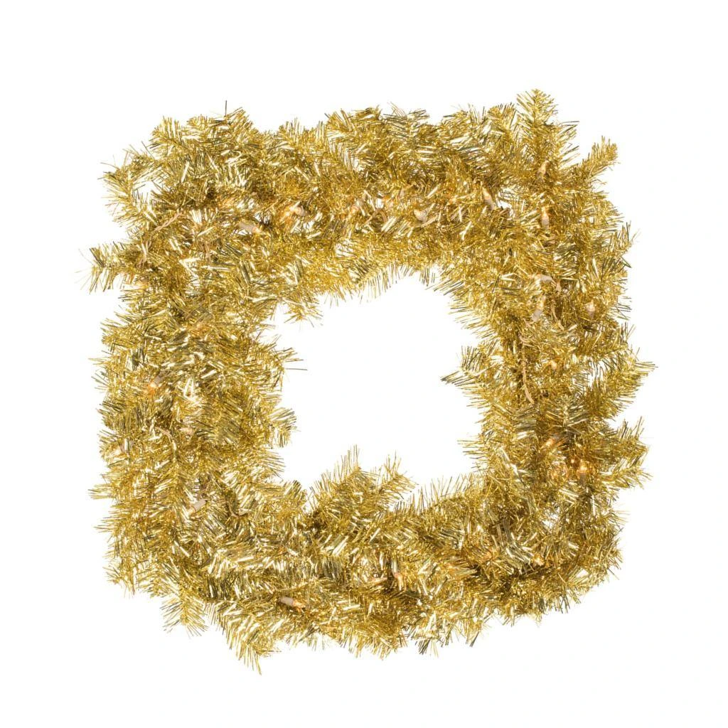 | Manufacturer Description: | 30″ Gold Tinsel Sq Wreath 50Clear (A147568) | ||