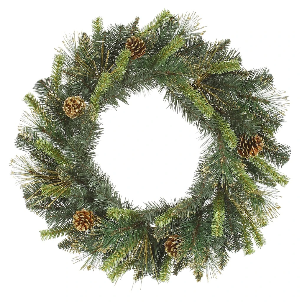 | Manufacturer Description: | 30″ Gold Glit Tip Pine Wreath 100CL 200T (J126537) | ||||||